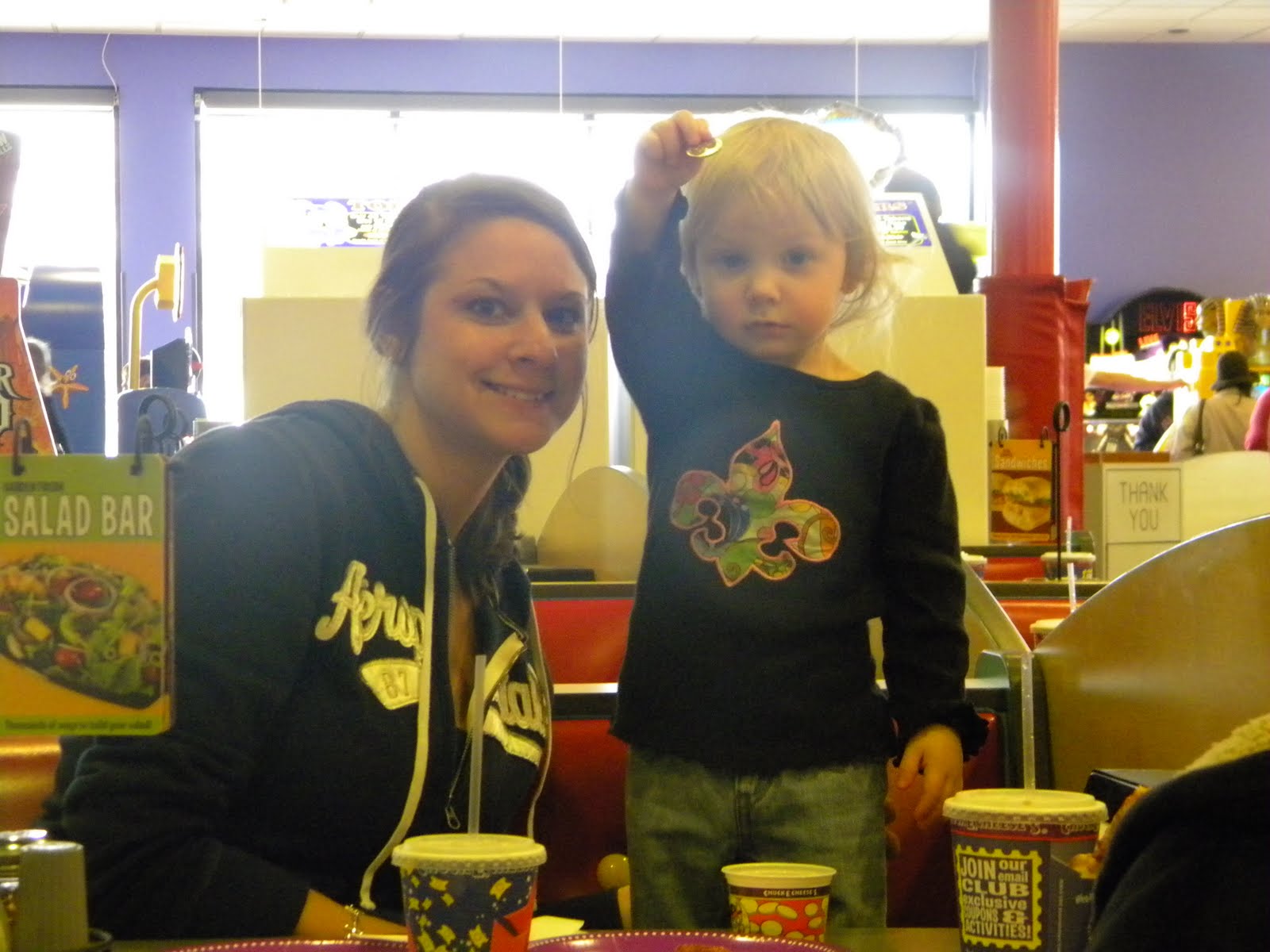 The first Saturday of February, the Carrollton-North Carrollton Library hosted the Taste of Soup. Last year, individuals made different types of soup for everyone to try. This year, they had different area restaurants make their soups. The two winning soups from last year came back this year too. They had 2 different types of veggie soups, one tasted like ketchup & the other had way too much seasonings & was not very good. They had a wonderful chili! It was the best chili I had ever tasted. They had a Crawfish & Corn Chowder & a Broccoli & Cheese soup. I'm not much on crawfish or broccoli so I didn't try these two, but several people said they were good. They also had Spicy Black Bean soup which was really good & not really that spicy. I'm sure I'm forgetting something, but I'll have to add them later, when I get to the cookbook. The two winners from last year were Chicken & Cheese soup which is great, and a Peaches n' Cream soup. The chicken soup tastes like chicken pot pie & the peach one...well I didn't eat it, but mom really liked it. I think you can substitute the peaches for whatever your favorite fruit may be (strawberries, blueberries, oranges?) and make it to your liking. Everyone voted on their favorites from the new soups this year. To vote, you had to put money into the jars in front of your favorite soup & whoever had the most money won. The top two winners will be back next year. The crawfish soup came in first and I believe the chili came in second.